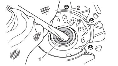 b.Remove the oil seals “1” with a flat-head screwdriver.