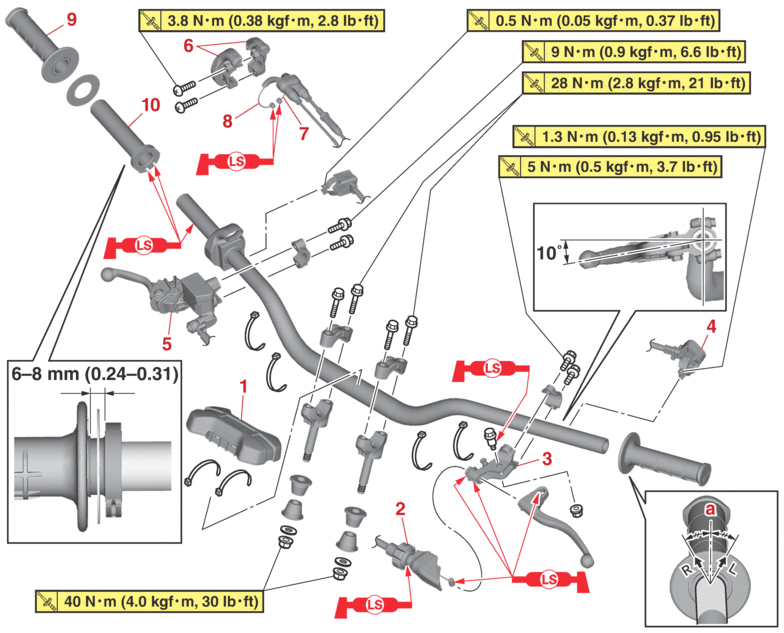 a.Slightly coat the handlebar left end with a rubber adhesive.