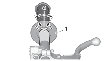 Install the handlebar grip (left) to the handlebar so that the line “a” between the two arrow marks faces straight upward. |