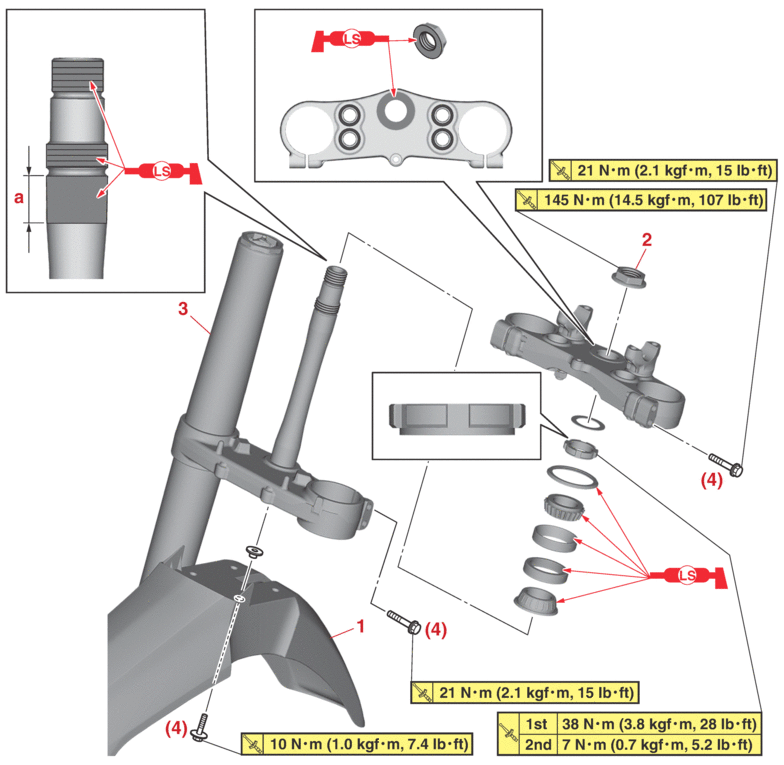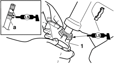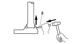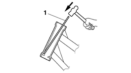 a.Remove the bearing race from the steering head pipe with a long rod “1” and a hammer.