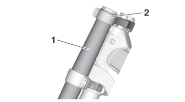 Tighten the steering ring nut with a steering nut wrench “2”.