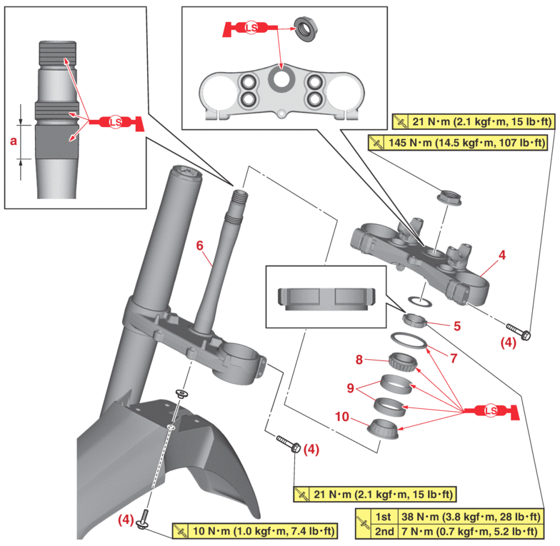 5.Check the steering stem by turning this lock to lock. If there is any binding, remove the steering stem and check the steering bearing.