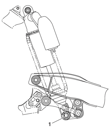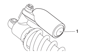 Before disposing the rear shock absorber, be sure to extract the nitrogen gas from valve “1”.
