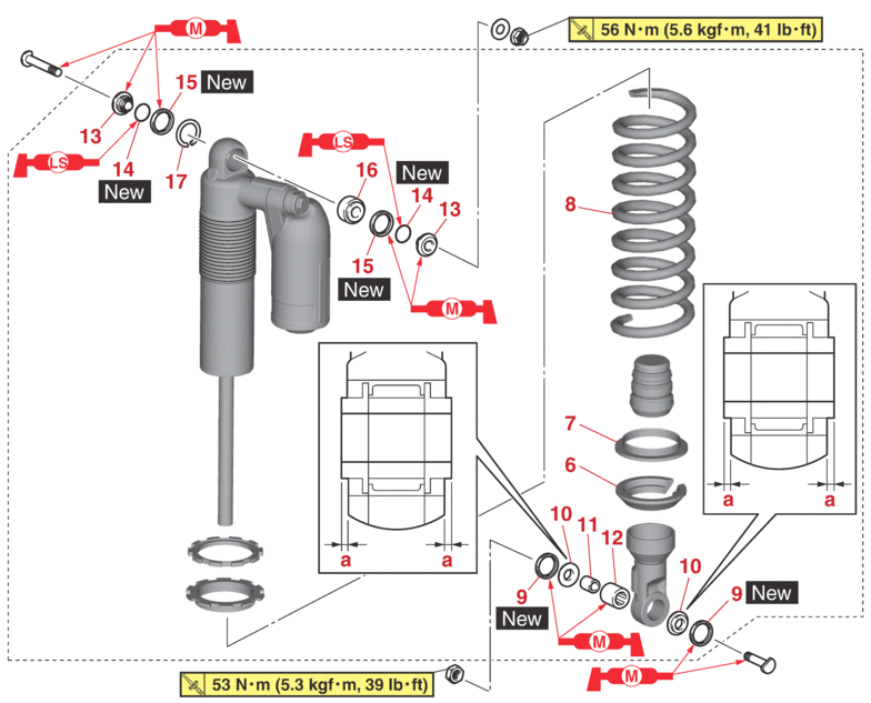 Gas leaks/oil leaks → Replace the rear shock absorber assembly.