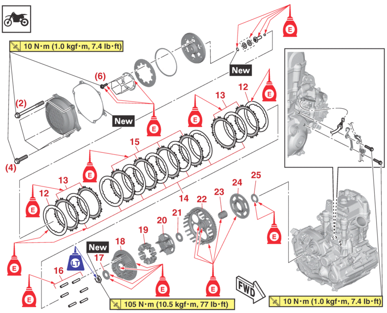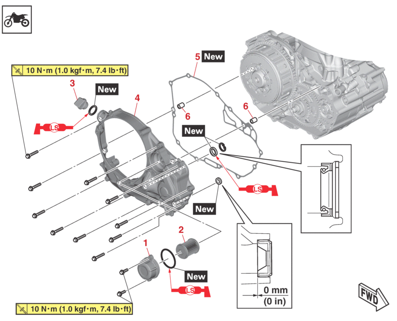 Excessive noise during operation → Replace the primary drive and primary driven gears as a set.