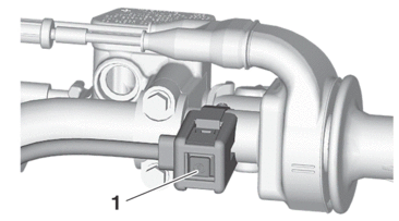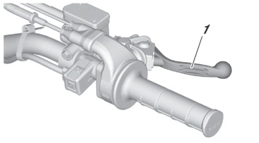 The front brake lever “1” is located on the right handlebar. Pull it toward the handlebar to activate the front brake.