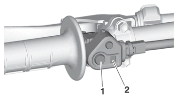 The start switch “1” is located on the right handlebar. Push this switch to crank the engine with the starter.