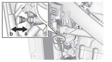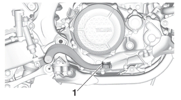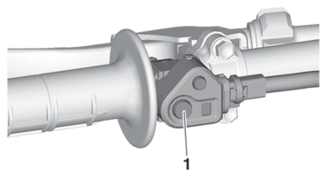 The engine stop switch “1” is located on the left handlebar. Continue pushing the engine stop switch till the engine comes to a stop.