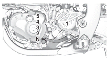 The shift pedal “1” has adopted a method of 1 down & 4 ups (press-down & kick-ups).