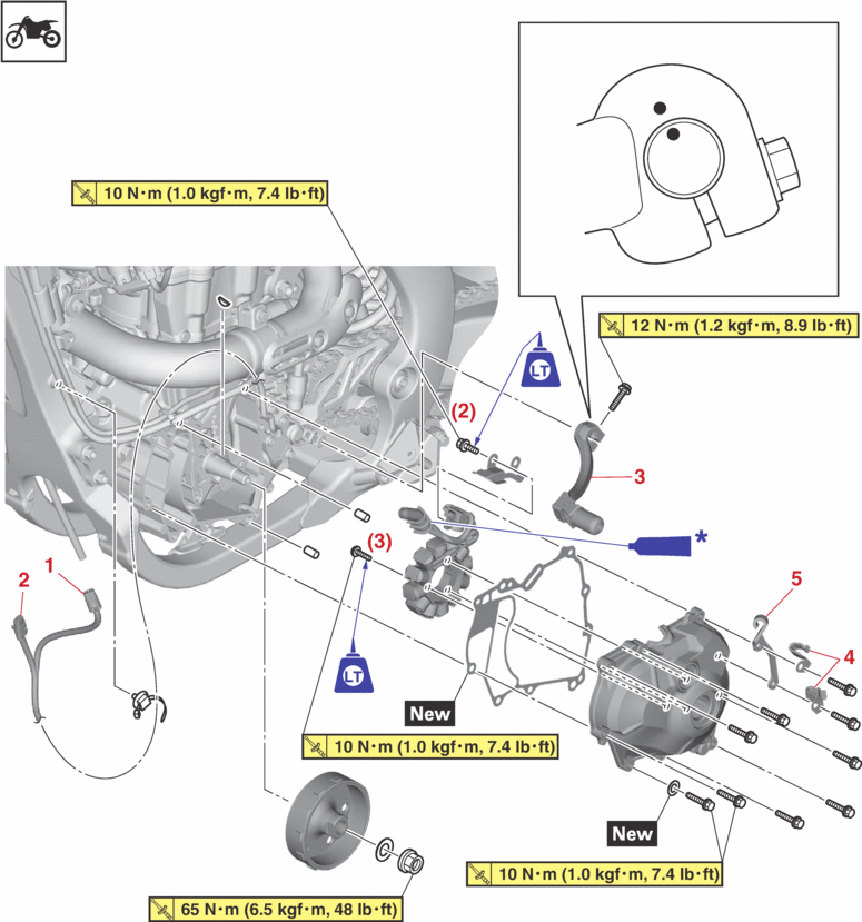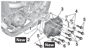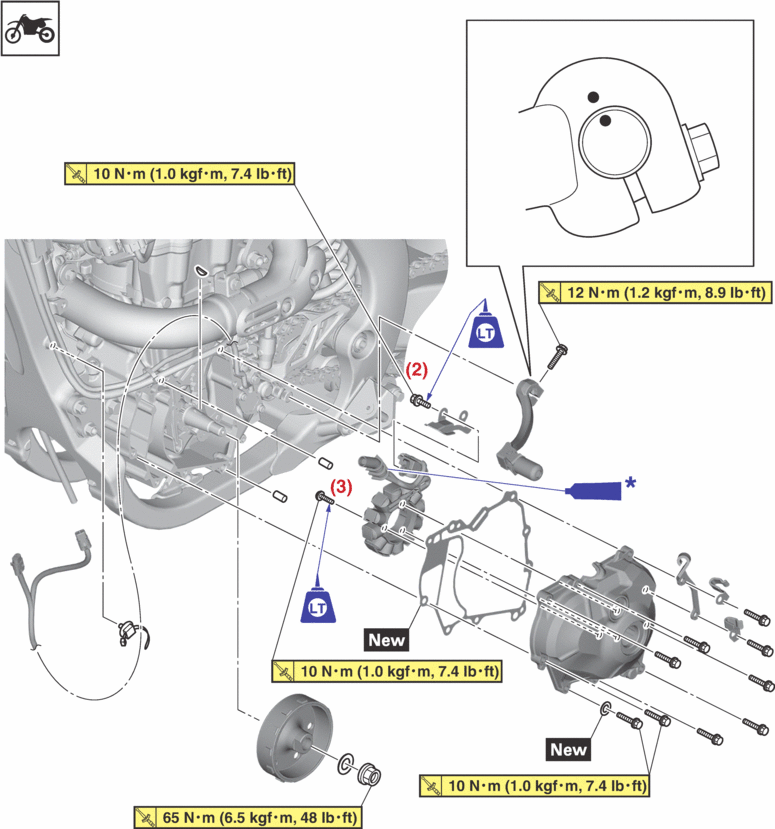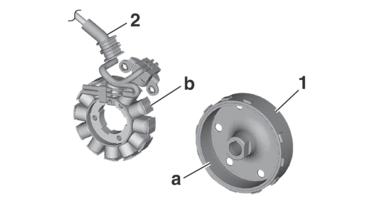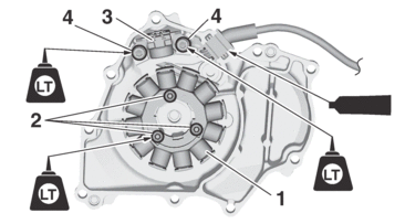 Removing the stator coil assembly ![]() * Yamaha bond No. 1215 (Three bond No. 1215®) |